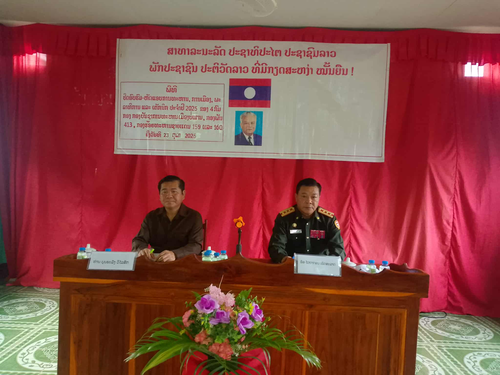 ວັນທີ 26 ຕຸລາ 2025 ນີ້, ກອງບັນຊາການທະຫານເມືອງເງິນ ແລະ ກອງຮ້ອຍ ທະຫານຊາຍແດນ 152. ເມືອງເງິນ ແຂວງໄຊຍະບູລີ ໄດ້ຈັດພິທີປິດຊຸດອົບຮົມ-ຫັດແອບ ການທະຫານ, ການເມືອງ, ພະລາທິການ-ເຕັກນິກ ປະຈຳປີ 2025 ໂດຍການເປັນກຽດເຂົ້າຮ່ວມ ຂອງສະຫາຍ ທອງພັນ ສຸກສະຫວັດ ກໍາມະການພັກເເຂວງ ເລຂາຄະນະບໍລິຫານງານພັກເມືອງ ປະທານປ້ອງກັນຊາດ ປ້ອງກັນຄວາມສະຫງົບເມືອງ, ມີກໍາມະການປະຈໍາພັກເມືອງ, ກໍາມະການພັກເມືອງ, ຫົວໜ້າຫ້ອງການ, ດ່ານສາກົນນໍ້າເງິນ, ...
