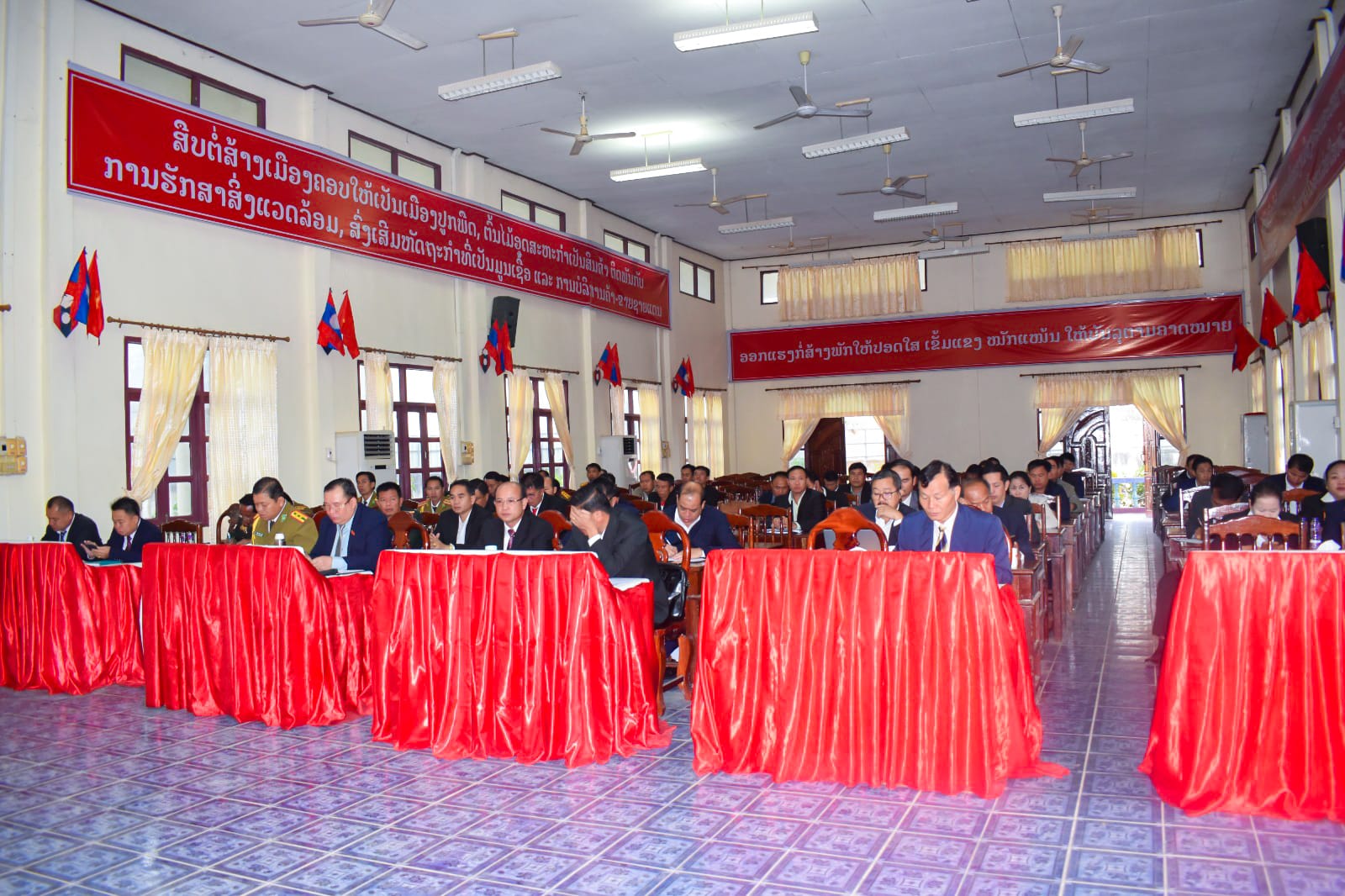 ໂດຍການເປັນປະທານຂອງສະຫາຍ ສົມນຶກ ສິງຄໍາ ກໍາມະການພັກແຂວງ ເລຂາພັກເມືອງ, ເປັນກຽດເຂົ້າຮ່ວມຂອງສະຫາຍ ພອນສະຫວັນ ໄຊສົມພັນ ກໍາມະການປະຈໍາພັກແຂວງ ຫົວໜ້າຄະນະຈັດຕັ້ງແຂວງ, ມີຄະນະປະຈໍາພັກເມືອງ, ກໍາມະການພັກເມືອງ, ເລຂາຄະນະພັກຮາກຖານ, ສໍານັກງານ-ອົງການ ແລະ ແຂກທີ່ຖືກເຊີນ ພ້ອມດ້ວຍເລຂາພັກບ້ານ 28 ບ້ານໃນທົ່ວເມືອງເຂົ້າຮ່ວມ.