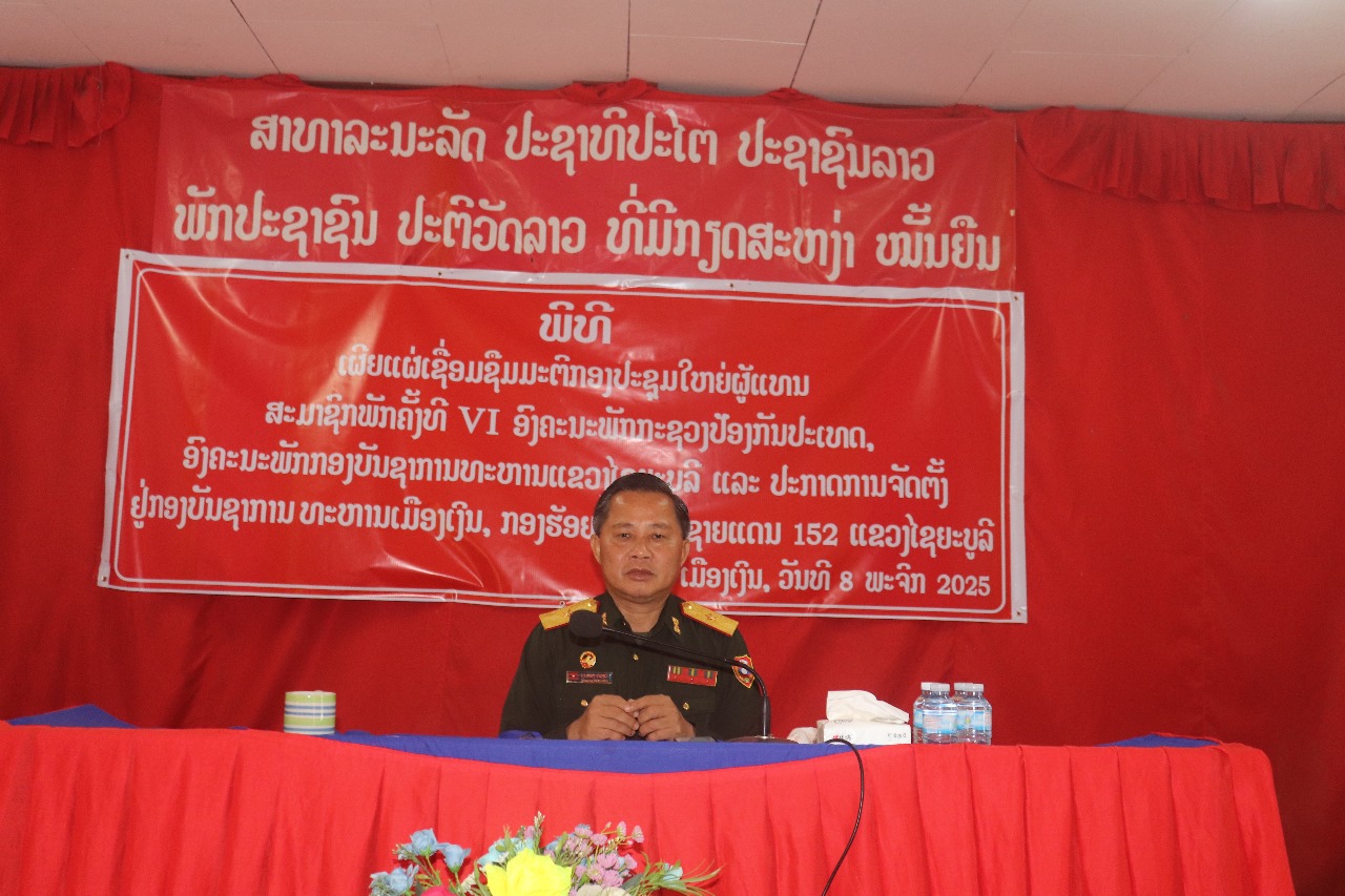 ໃນວັນທີ 8 ພະຈິກ 2025 ນີ້ ຢູ່ທີ່ ສະໂມສອນ ຂອງກອງບັນຊາການທະຫານ ເມືອງເງິນ ແຂວງໄຊຍະບູລີ ໄດ້ຈັດພິທີເຜີຍແຜ່ເຊື່ອມຊຶມມະຕິກອງປະຊຸມໃຫຍ່ຜູ້ແທນສະມາຊິກພັກ ຄັ້ງທີ VI ອົງຄະນະພັກກະຊວງປ້ອງກັນປະເທດ, ອົງຄະນະພັກ ກອງບັນຊາການທະຫານແຂວງໄຊຍະບູລີ ແລະ ປະກາດການຈັດຕັ້ງ ຢູ່ກອງບັນຊາການທະຫານເມືອງ,ກອງຮ້ອຍທະຫານ ຊາຍແດນ 152, ໂດຍການເປັນປະທານຂອງ ສະຫາຍ ພົວ ປອ ບຸນຍອງ ດວງດີ ກຳມະການປະຈໍາພັກແຂວງ,ຫົວໜ້າການທະຫານ ກອງບັນຊາການທະຫານແຂວງໄຊຍະບູລີ, ມີບັນດາຄະນະປະຈໍາພັກເມືອງ, ກໍາມະການພັກເມືອງ, ຫົວໜ້າຫ້ອງການ, ມີຄະນະພັກ-ຄະນະບັນຊາ ກອງບັນຊາການທະຫານເມືອງ, ກອງຮ້ອຍຊາຍແດນ 152, ຕະຫຼອດຮອດນາຍ ແລະ ພົນທະຫານ ເຂົ້າຮ່ວມ