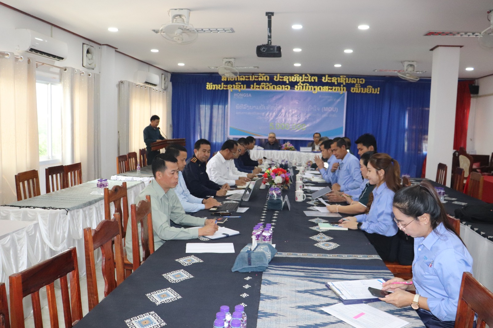 ພິທີລົງນາມບັນທຶກຂໍ້ຕົກລົງຄວາມເຂົ້າໃຈ (MOU) ແຜນການສະໜັບສະໜູນການດຳເນີນໂຄງການພັດທະນາເສດຖະກິດ ແລະ ສັງຄົມ ຂອງເມືອງ ຫົງສາ ປະຈຳປີ 2026  ລະຫວ່າງ ບໍລິສັດ ໄຟຟ້າຫົງສາ ຈໍາກັດ ແລະ ເມືອງ ຫົງສາ, ໄດ້ຈັດຂື້ນໃນວັນທີ 30 ມີນາ 2026 ນີ້, ຢູ່ທີ່ຫ້ອງປະຊຸມຊັ້ນ 3 ຫ້ອງວ່າການເມືອງໆຫົງສາ ແຂວງໄຊຍະບູລີ, ຮ່ວມລົງນາມເຊັນບົດບັນທຶກຂໍ້ຕົກລົງຄວາມເຂົ້າໃຈ (MOU) ຄັ້ງນີ້, ໂດຍແມ່ນທ່ານ ແຫຼ້ ອ່ອນສົມບູນ ປະທານຄະນະກຳມະການປົກຄອງເມືອງ ແລະ ທ່ານ ຄະທາຍຸດ ຊູພູນ ຜູ້ອຳນວຍການໃຫຍ່ ບໍລິສັດ ໄຟຟ້າຫົງສາ ຈຳກັດ, ມີຮອງປະທານຄະນະກຳມະການປົກຄອງເມືອງ, ຄະນະກຳມະການຜູ້ບໍລິຫານ ບໍລິສັດ ໄຟຟ້າ ຫົງສາ ຈຳກັດ, ພາກສ່ວນທີ່ກ່ຽວຂ້ອງຂອງເມືອງ ແລະ ບໍລິສັດ ໄຟຟ້າຫົງສາ ຈໍາກັດ ເຂົ້າຮ່ວມເປັນສັກຂີພິຍານ.