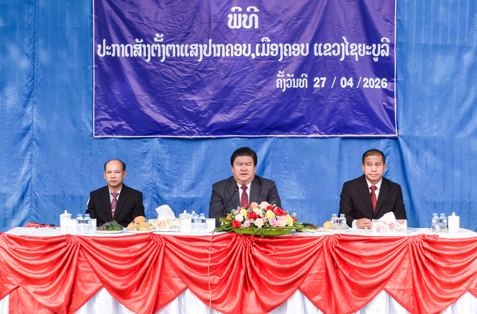 ພິທີ ປະກາດສ້າງຕັ້ງຕາແສງປາກຄອບ ເມືອງຄອບ ແຂວງໄຊຍະບູລີ ໄດ້ຈັດຂື້ນໃນຕອນເຊົ້າວັນທີ 27 ເມສາ 2026 ນີ້, ຢູ່ທີ່ເດີ່ນກິລາໂຮງຮຽນປະຖົມສົມບູນຫາດງາມ. ໂດຍການເປັນກຽດເຂົ້າຮ່ວມ ຂອງທ່ານ ດວງຕາ ໄຊວຸດ ຮອງເລຂາຄະນະບໍລິຫານງານພັກແຂວງ, ປະທານຄະນະກໍາມະການປົກຄອງແຂວງ, ທ່ານ ສົມນຶກ ສິງຄໍາ ກໍາມະການພັກແຂວງ ເລຂາພັກເມືອງ, ທ່ານ ໄລ ອິນທິບ ຮອງເລຂາພັກເມືອງ ປະທານຄະນະກໍາມະການປົກຄອງເມືອງ, ມີທີມງານຂັ້ນແຂວງ, ການນໍາຂັ້ນເມືອງ, ພະນັກງານອາວຸໂສບໍານານ, ຄະນະກະກຽມສ້າງຕັ້ງຕາແສງ, ພະນັກງານ, ທະຫານ, ຕໍາຫຼວດ, ອົງການປົກຄອງບ້ານ ຕະຫຼອດຮອດປະຊາຊົນ ແລະ ກ້ອນກໍາລັງ ເຂົ້າຮ່ວມຢ່າງພ້ອມພຽງ.